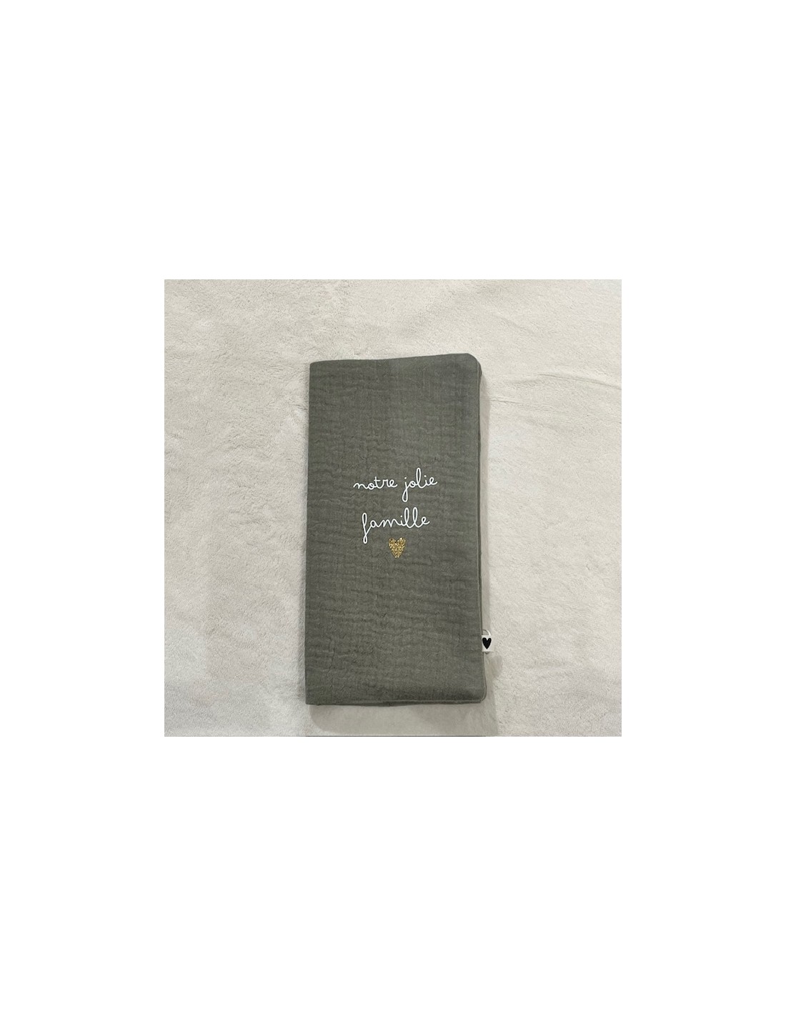 Protège Livret de Famille - Gaze de Coton - Vert - Notre Jolie Famille