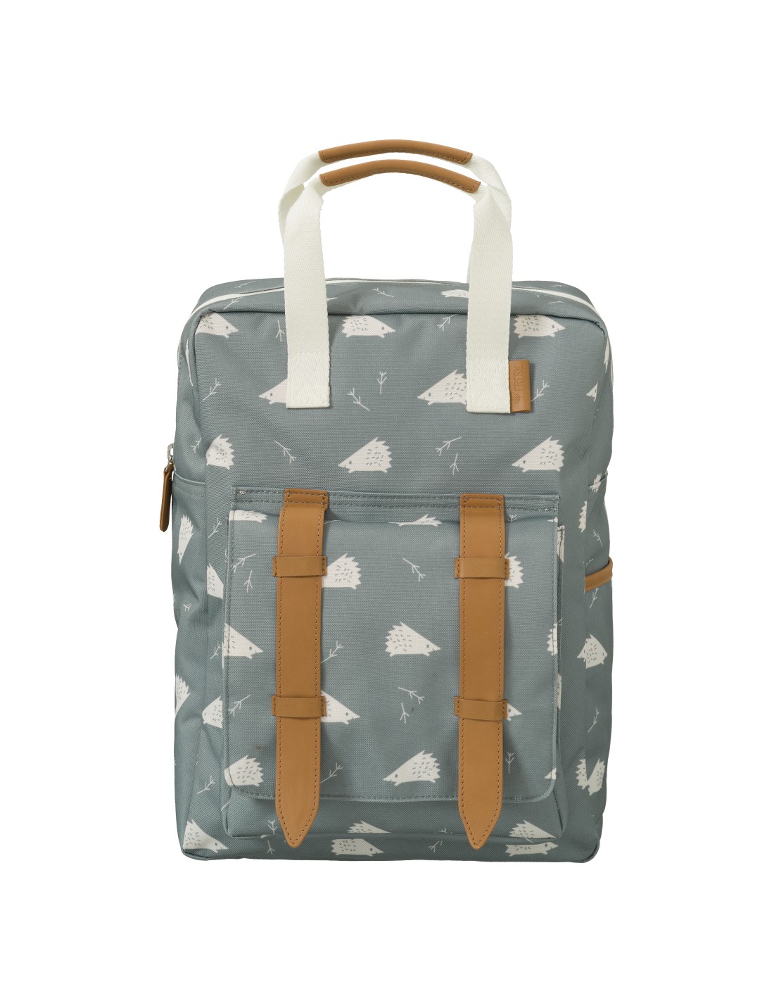 Ce grand sac à dos en toile Bleu Marine imprimé Hérisson et ses finitions en cuir est fabriqué à partir de bouteilles recyclées ! Le sac à dos est très pratique avec son grand compartiment à fermeture éclair, à l'intérieur un compartiment élastiqué, et un emplacement pour une gourde. Sur l'avant une poche à fermeture aimantée. Bretelles réglables et sangle d'attache ventrale pour ne pas que les bretelles glissent. Idéal pour la rentrée au CP !