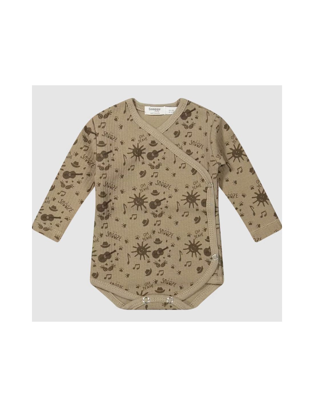 Body à manches longues forme croisée cache cœur avec boutons pression sur le devant et à l'entre-jambes