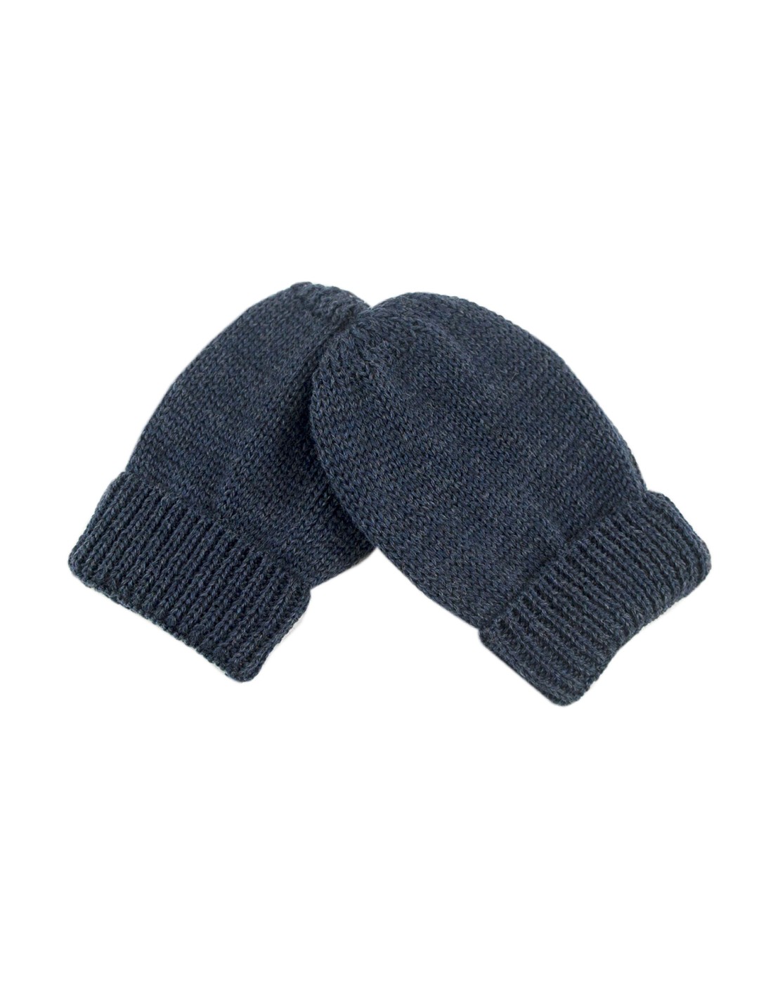 Jolies petite paire de moufles tricottées 100% Laine de mérinos couleur Bleu Marine pour bébé.