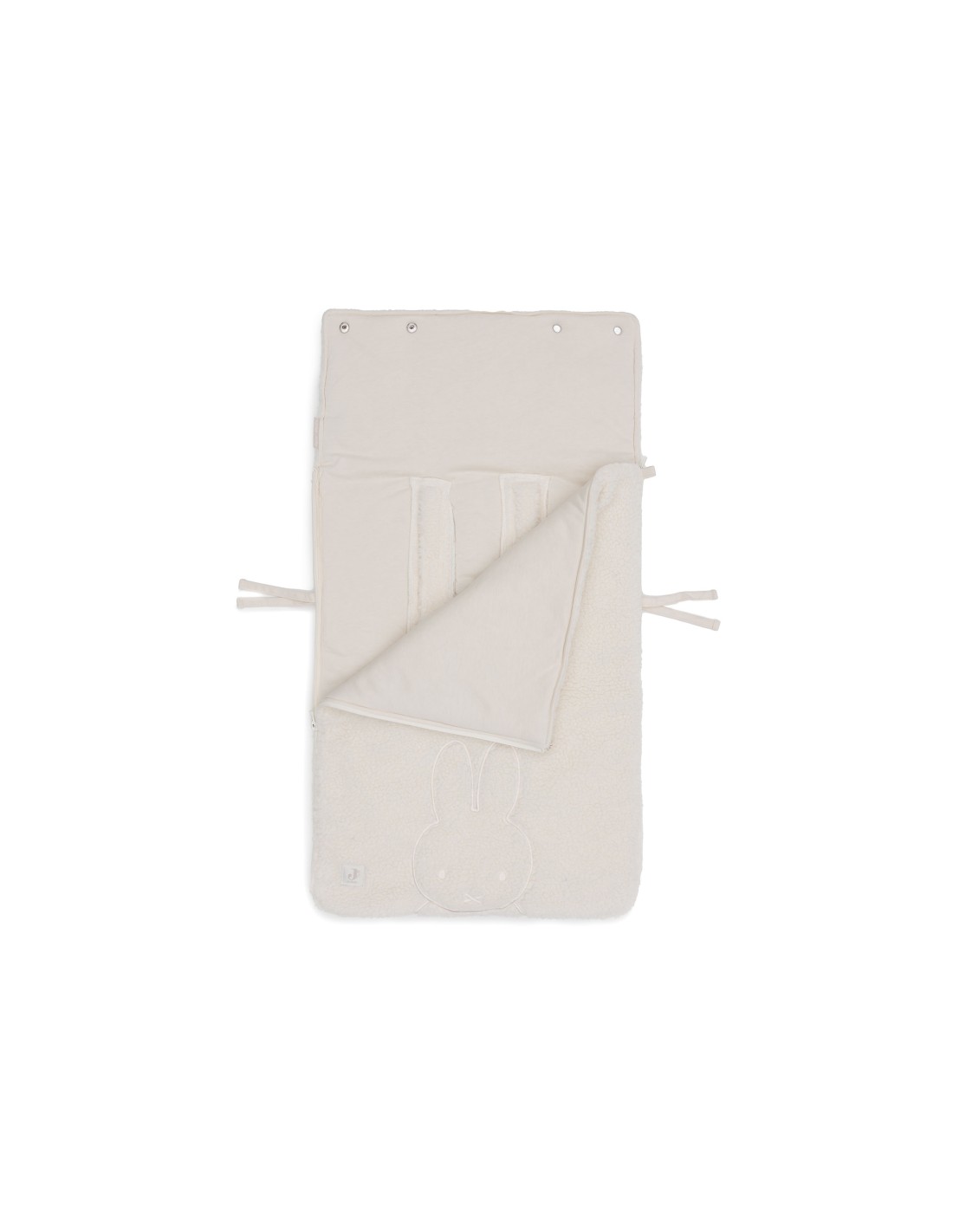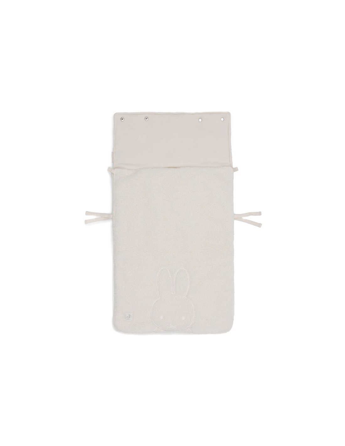 Tissu bouclette écru avec broderies Lapin Miffy discrète et élégante.
