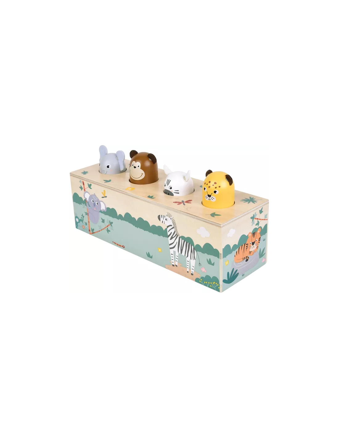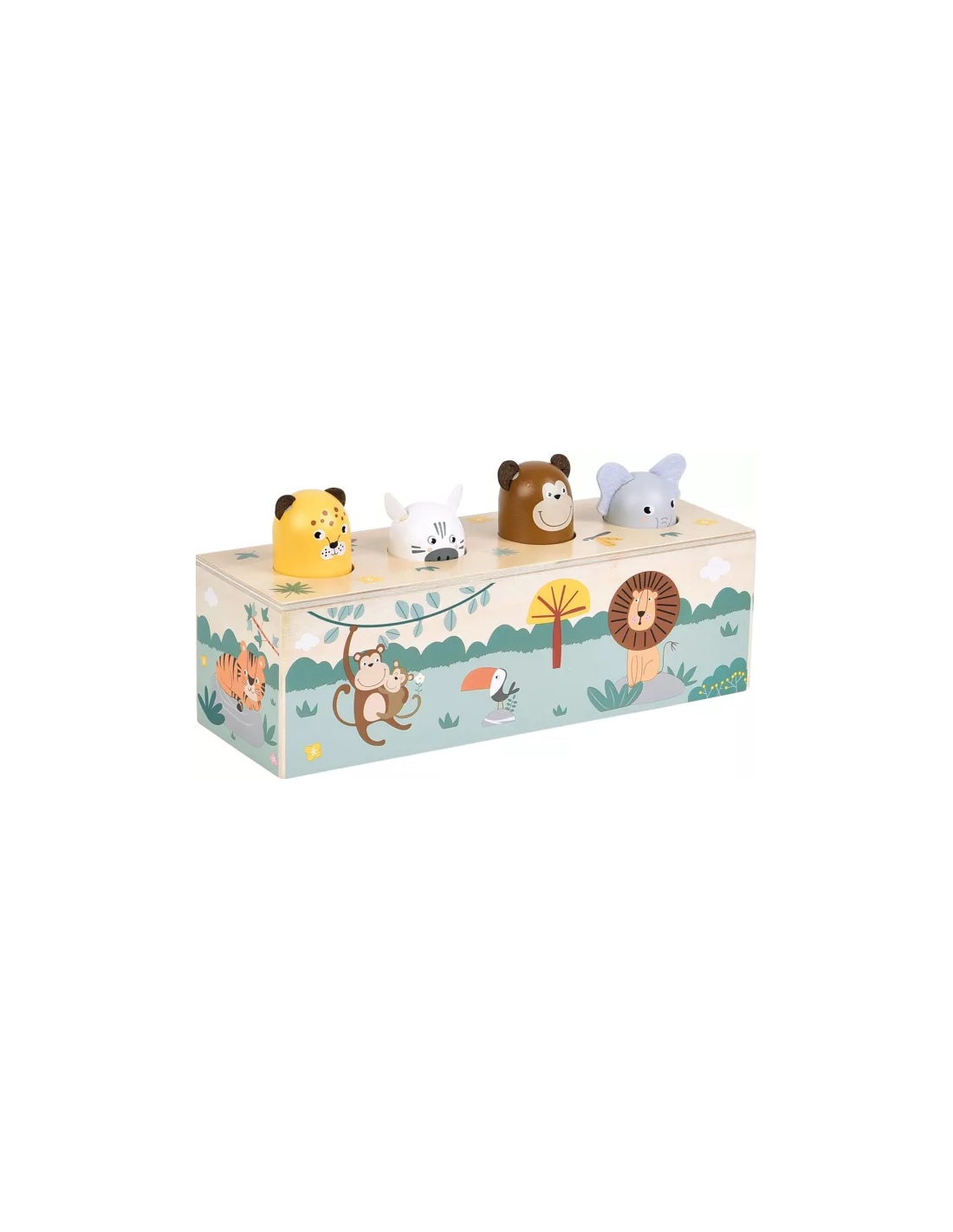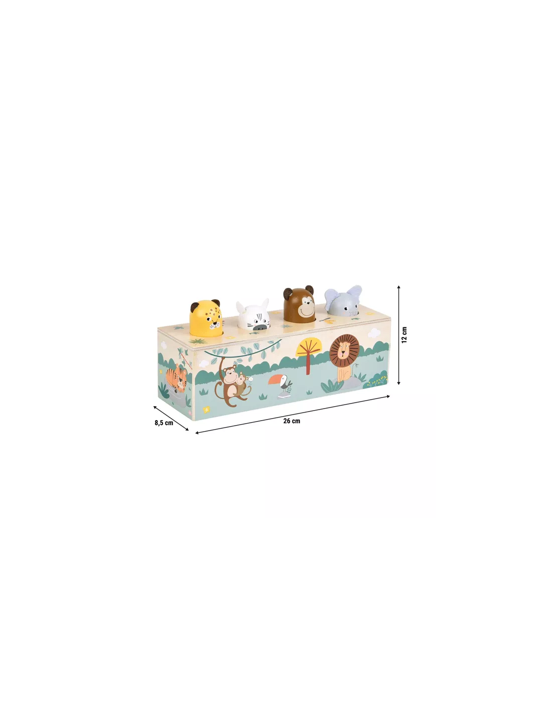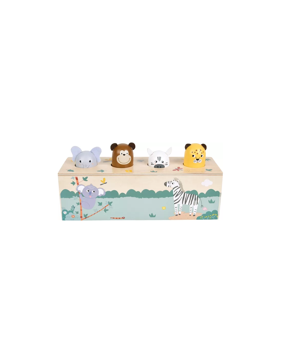 Motricité fine & coordination : en pressant les têtes d’animaux, l’enfant affine ses gestes et contrôle ses mouvements.