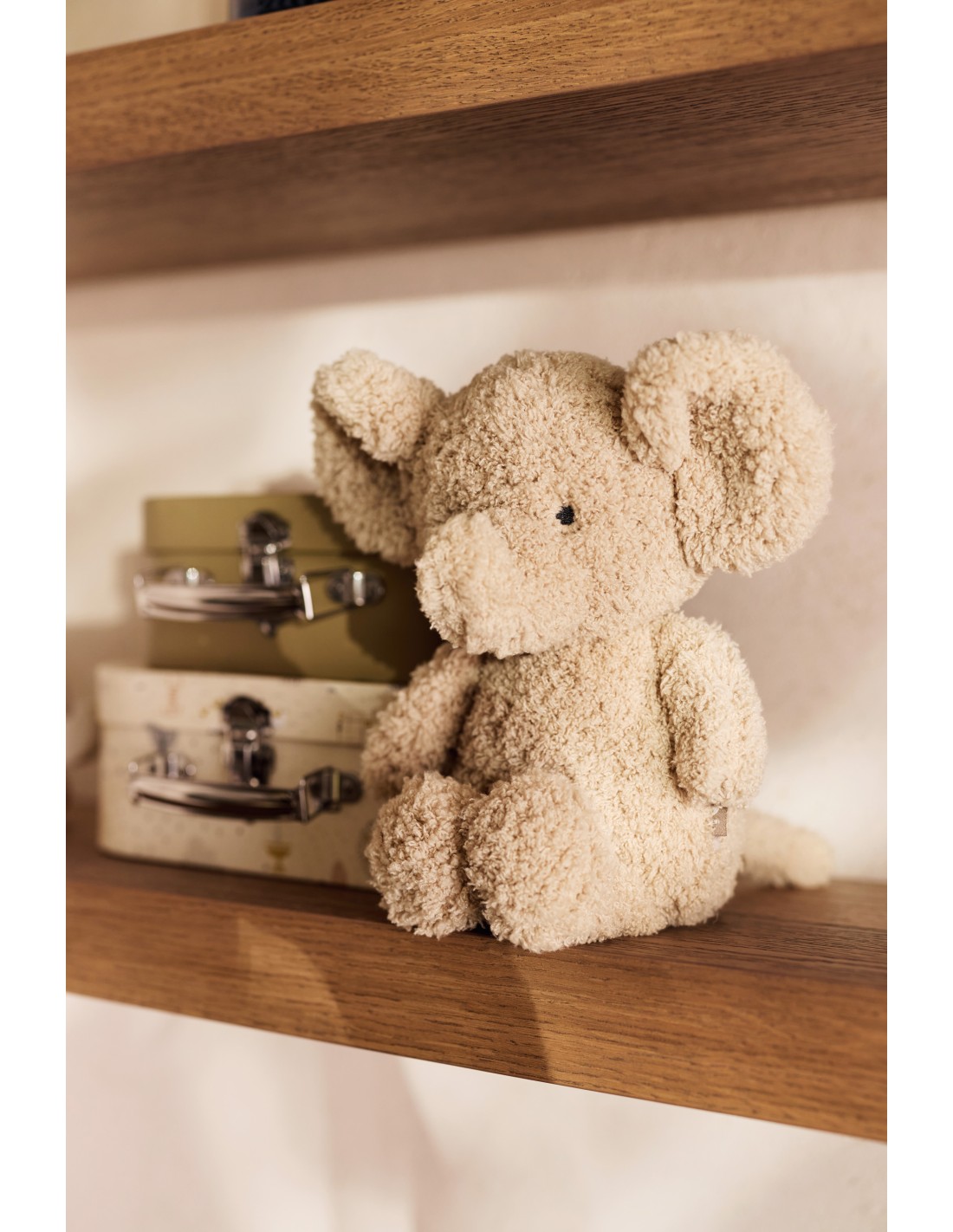 Petite peluche éléphant toute mignonne en bouclette de couleur beige