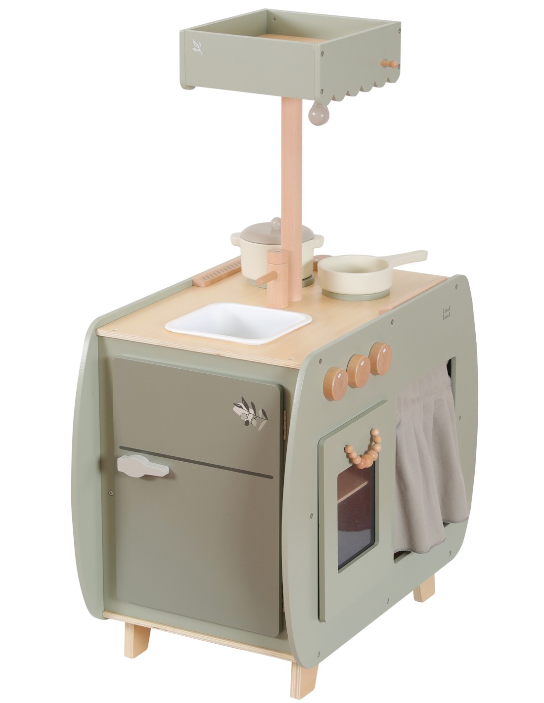 Fabriquée en bois de haute qualité, la Cuisine Bistro Olive est conçue pour durer. Ses matériaux sont respectueux de l’environnement, garantis non toxiques, et adaptés aux enfants. La peinture utilisée est à base d’eau, assurant une sécurité optimale pour les plus petits tout en préservant l’aspect esthétique du jouet.