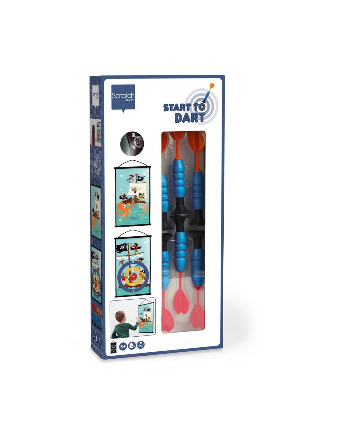 Ce jeu de fléchettes aimanté sur le thème des pirates possède 2 faces avec 2 gameplay différents.