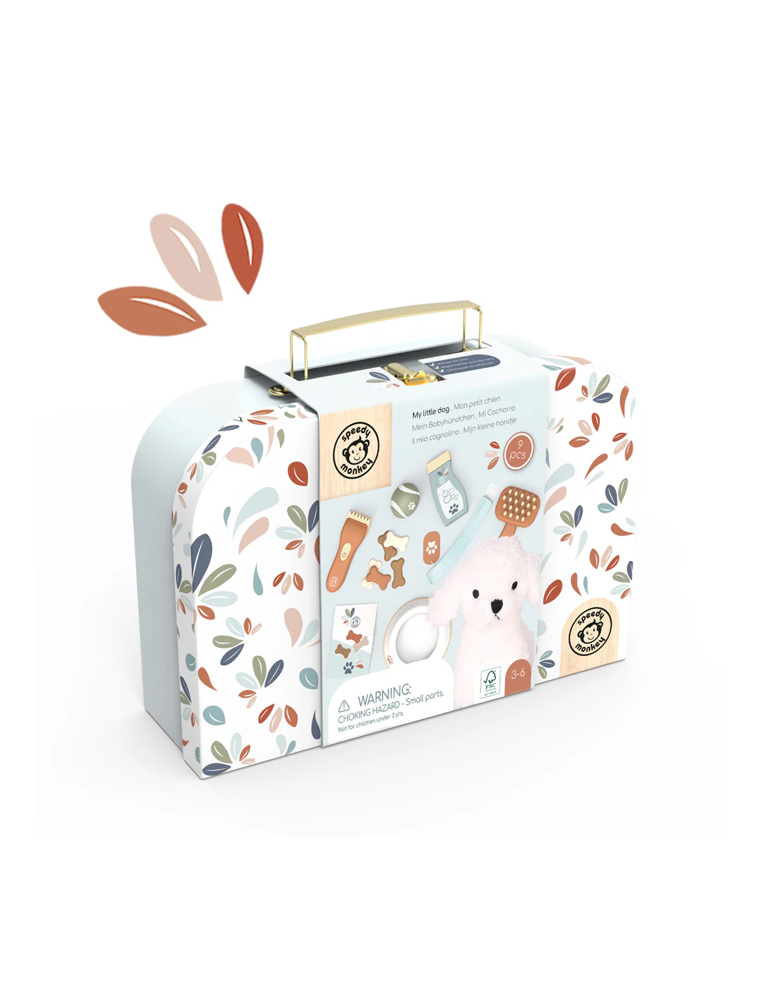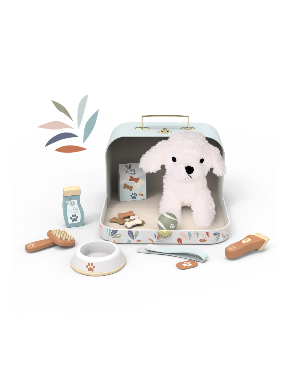 Retrouvez le nécessaire pour prendre soin de votre peluche Chien dans cette valisette. Elle permet d'emporter avec vous tout le nécessaire de soin pour votre compagnon à 4 pattes.