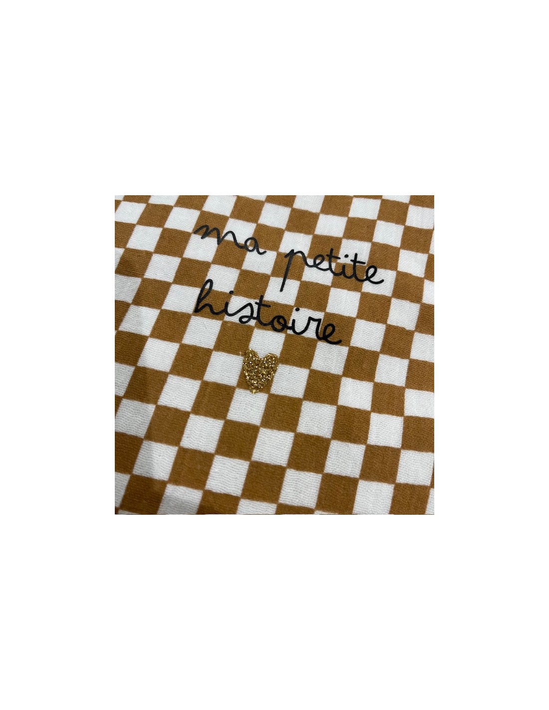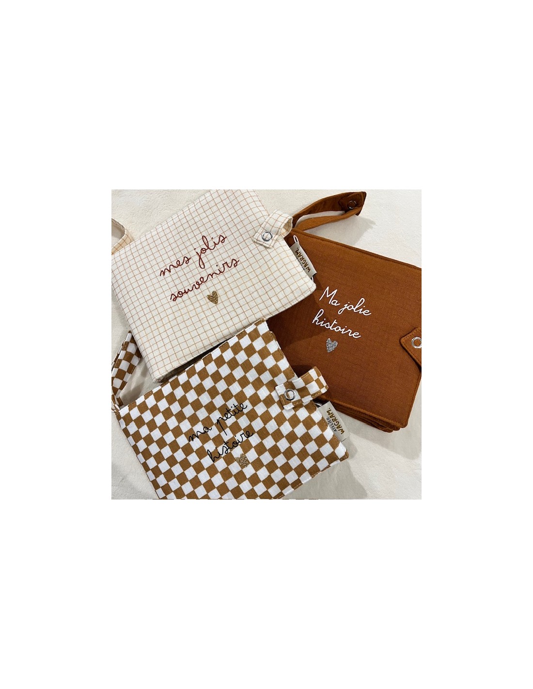 Joli petit Album photo pour enfant en Gaze de coton Damier Caramel - Mea Petite Histoire - Cœur Doré