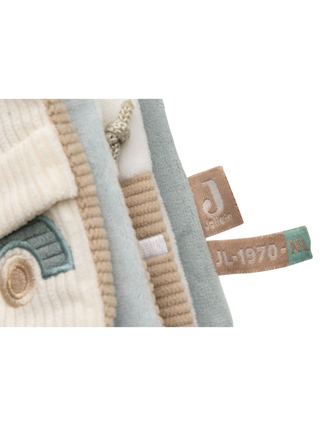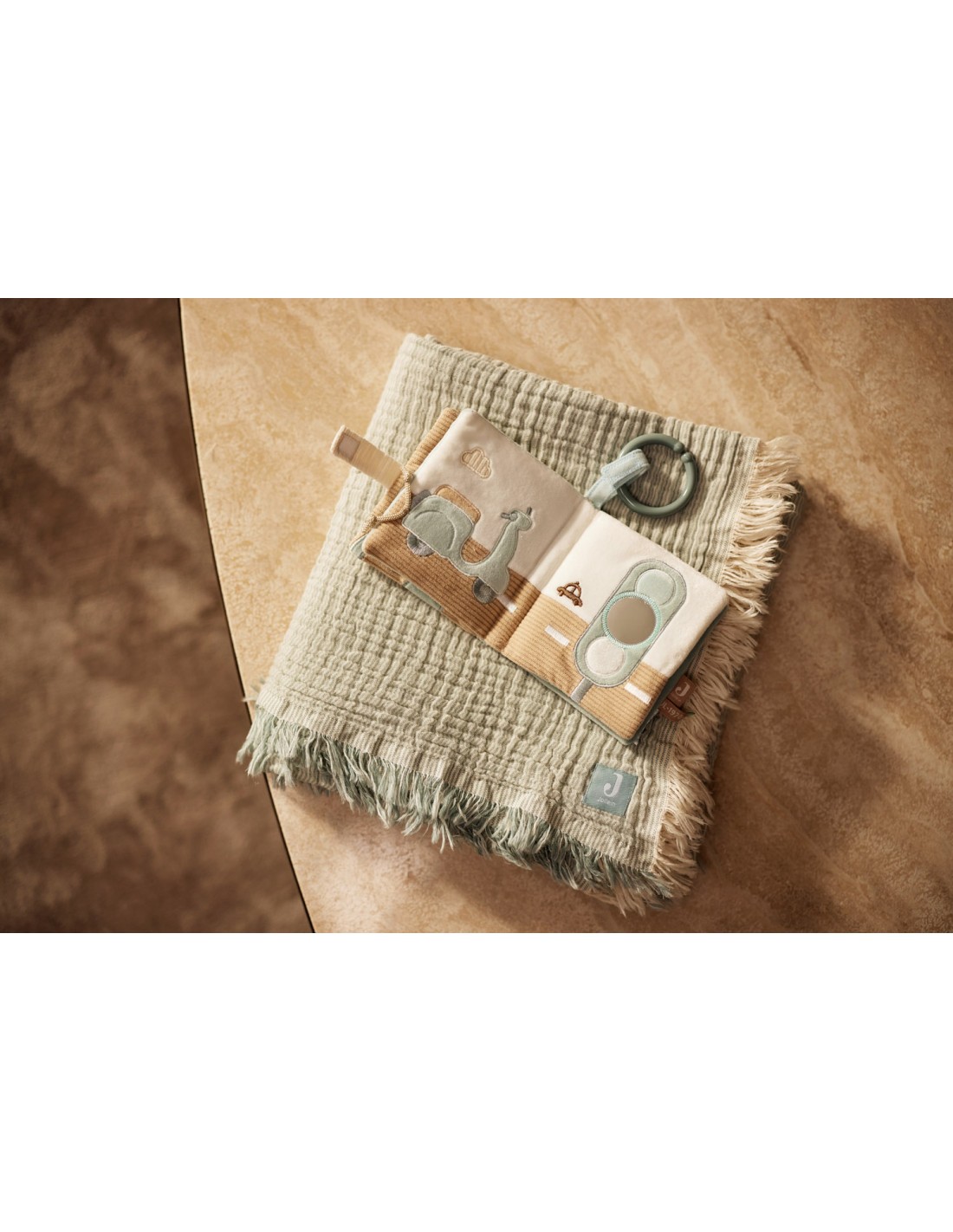 Conçu pour les petites mains curieuses, il se compose de quatre pages en tissu côtelé ultra-doux aux teintes Sea Green et Cloud Blue.