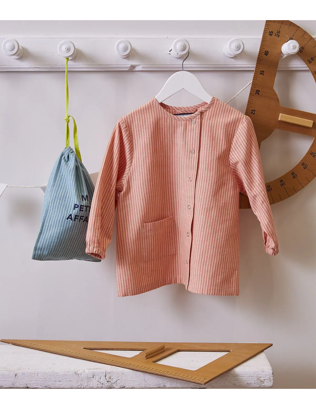 De couleur bleu à rayure, ce tablier est parfait pour accompagner votre enfant dans ses activités artistiques ou salissantes.