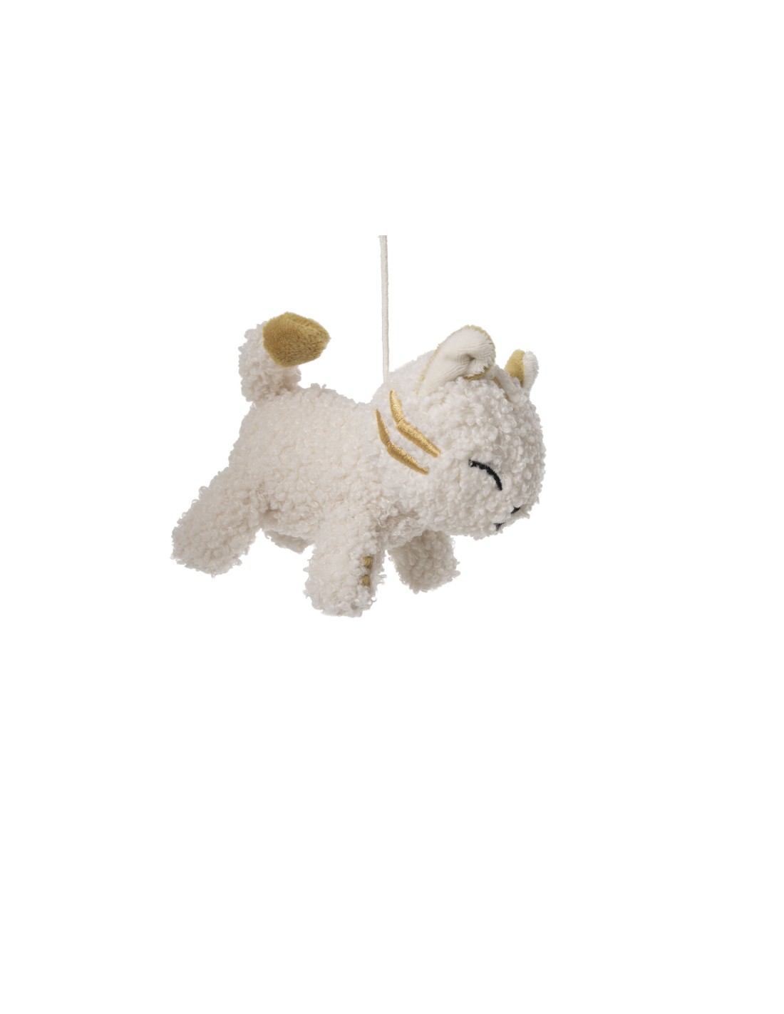 Ce joli mobile dans les tons Beige et Bleu composé de 4 sujets en peluche pourra trouver une belle place au dessus du lit ou de la table à langer de votre bébé.
