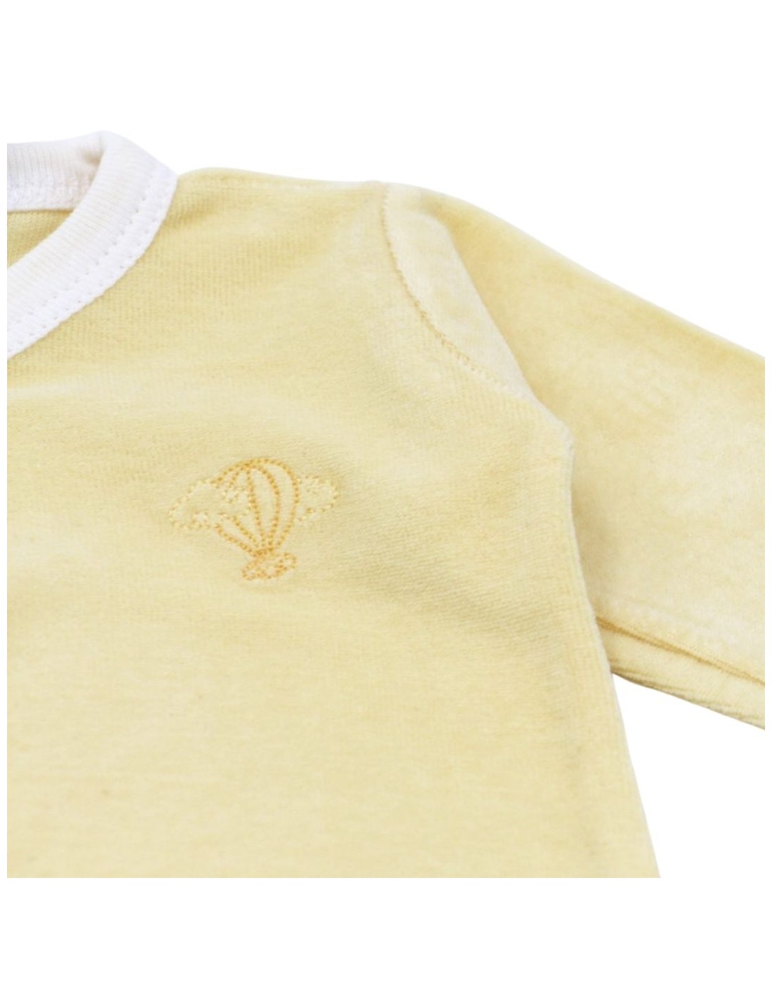 Pyjama en Velours à pieds Jaune Pâle 100% Coton biologique.
