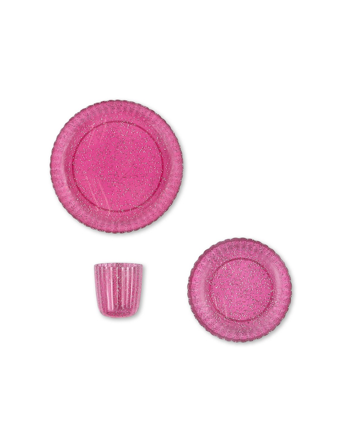 Le set comprend : 1 assiette à rebords, 1 bol, 1 timbale