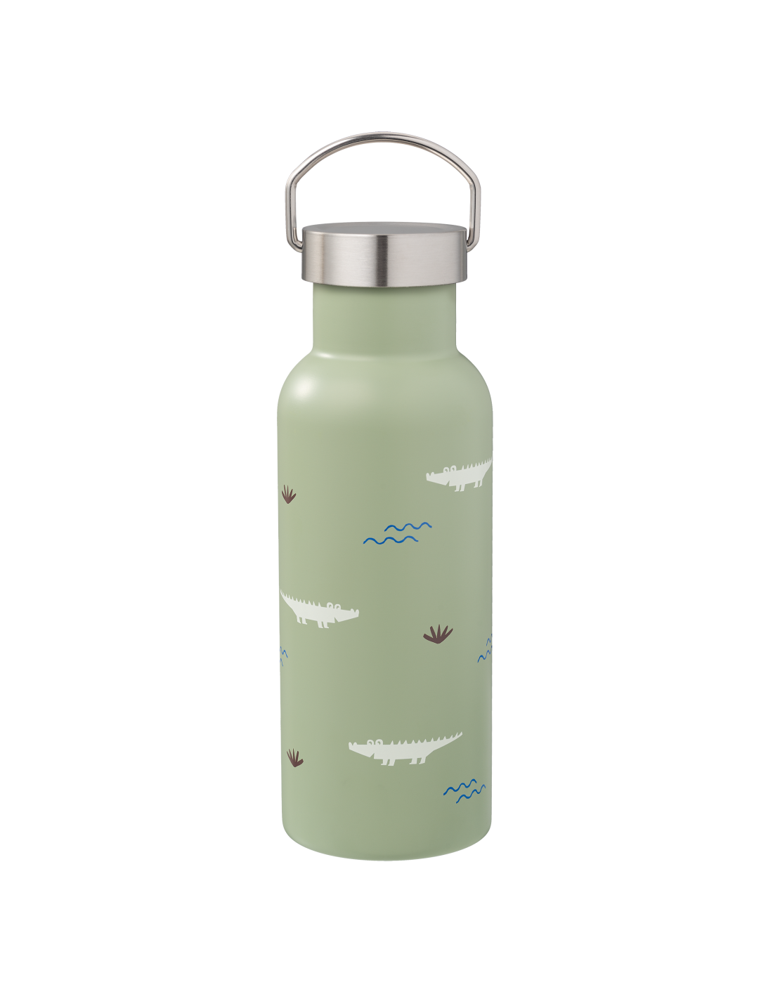 Cette jolie gourde isotherme verte avec ses adorables motifs crocodile dispose de 2 bouchons, un simple en métal et un avec bec et paille idéal pour faire boire vos petits. Ainsi la petite gourde pourra être utilisée durant plusieurs années. La gourde conserve les liquides chauds ou froids à température durant 12 heures.
